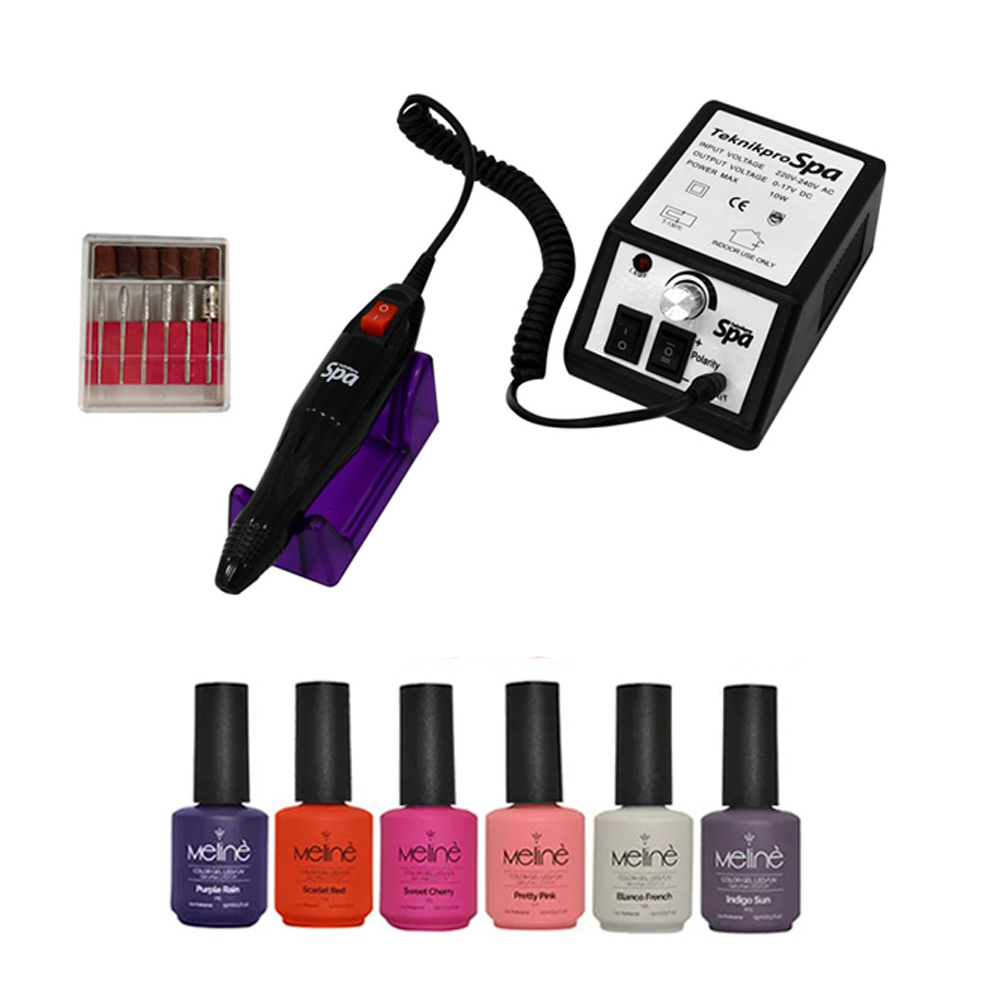 6 Esmaltes Semipermanentes Meline + Torno Student Drill