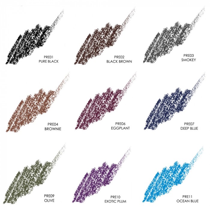 Delgados y fáciles de aplicar, estos lápices de ojos con forma de crayón no requieren afilado. Simplemente gire cuando el producto se opaque y vuelva a su estado original. La fórmula única a prueba de agua garantiza el uso sin que se corra, durante todo el día.
