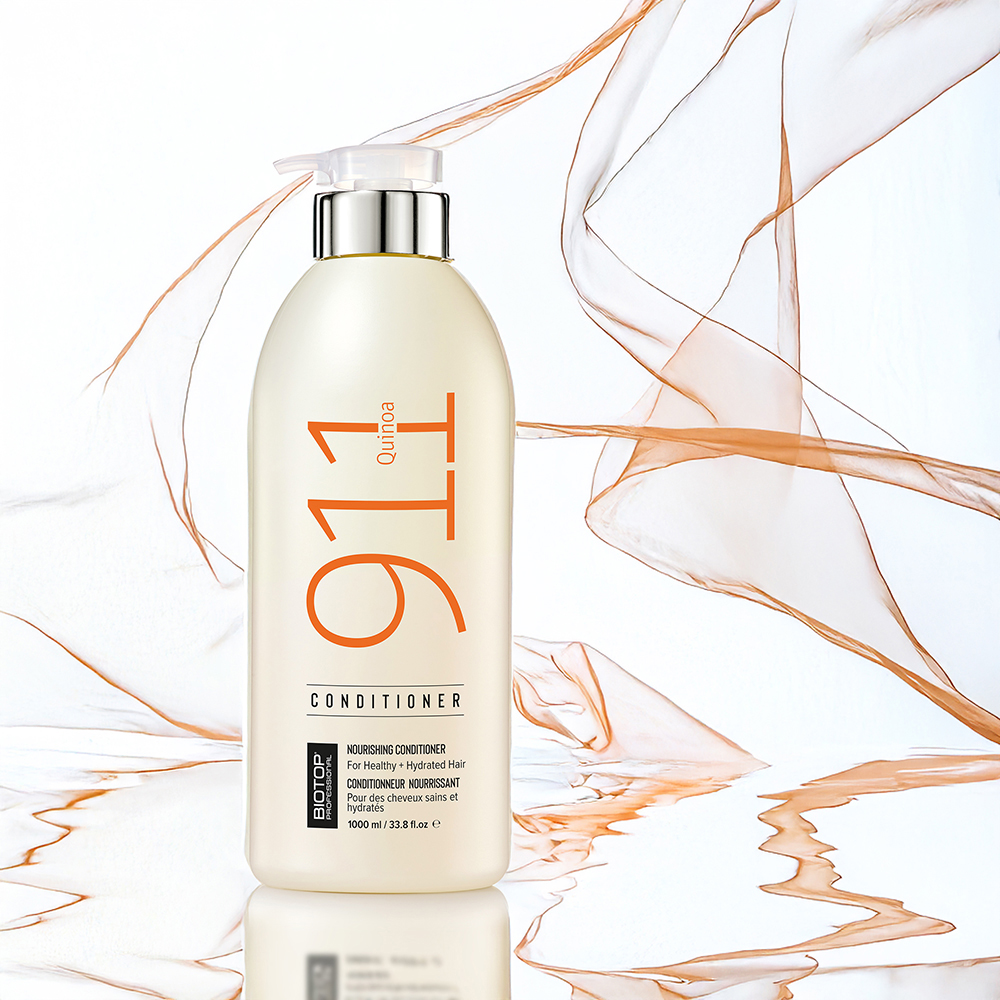 911 Quinoa Acondicionador hidrata en profundidad y aporta hidratación y nutrientes a los cabellos secos, castigados u opacos. Esta fórmula, que equilibra el pH, está enriquecida con proteínas de quinoa para alisar y acondicionar el cabello, y a la vez restaurar los aminoácidos y proteínas esenciales, dejando el cabello sano, brillante y más manejable.
