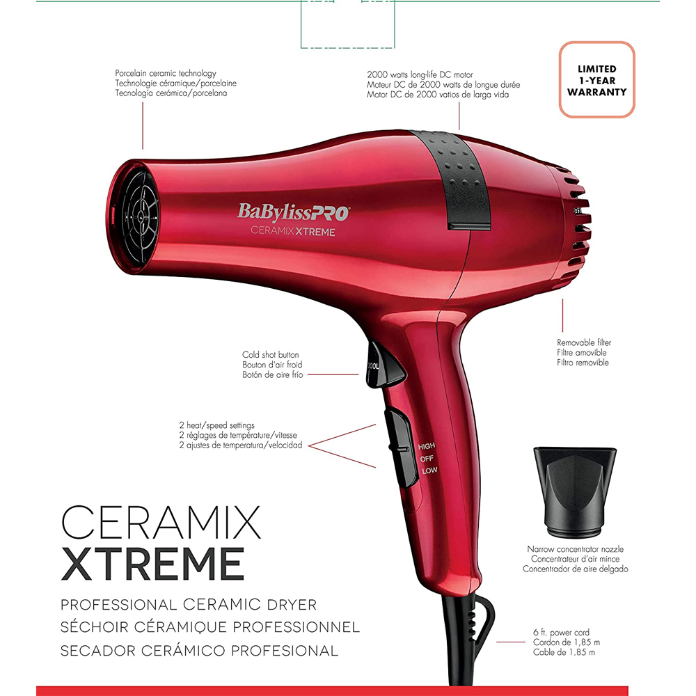 La tecnología cerámica distribuye el calor en forma pareja y elimina los puntos calientes que lastiman al cabello. Cuando se calienta, la cerámica emite iones negativos que embellecen y renuevan la vitalidad del cabello. Este secador creará cabello lacio y sedoso al mismo tiempo que eliminará el frizz.