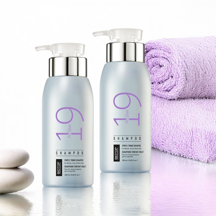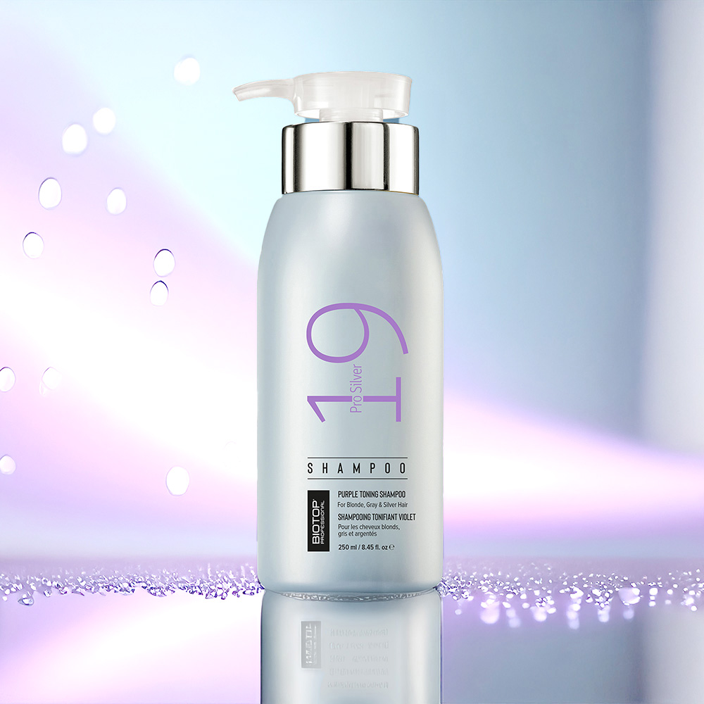 19 Pro Silver Champú restaura los tonos fríos plateados, blancos, grises y rubios platino neutralizando los tonos amarillos y cobrizos no deseados. Está enriquecido con extracto de hoja de té verde para hidratar el cuero cabelludo y contribuir al crecimiento sano del cabello. Con una alta concentración de vitamina E y aceite de Abisinia, proporciona hidratación intensa y ayuda a reducir el frizz, dejando el cabello liso con un hermoso brillo.