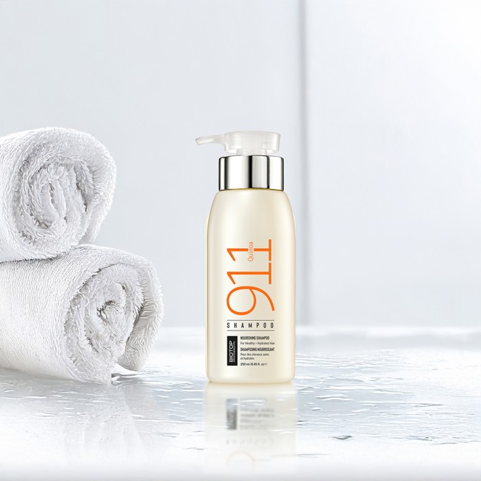 911 Quinoa Champú proporciona proteínas y nutrientes diarios para revitalizar, hidratar y reponer el cabello seco, castigado u opaco. Esta fórmula, que equilibra el pH, está enriquecida con proteínas de quinoa para restaurar los aminoácidos, ácidos grasos y vitaminas esenciales y devolver el brillo, la vitalidad y la manejabilidad al cabello.