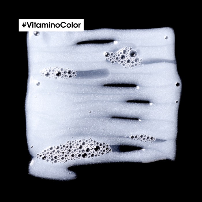 El Shampoo Vitamino, enriquecido con antioxidantes y filtro UV, aporta tonos vibrantes y brillo infinito. Elimina residuos protegiendo el pelo y la luminosidad del color. Su fórmula profesional contiene resveratrol, un poderoso anti-oxidante inspirado en en cuidado de la piel para una protección del color final.