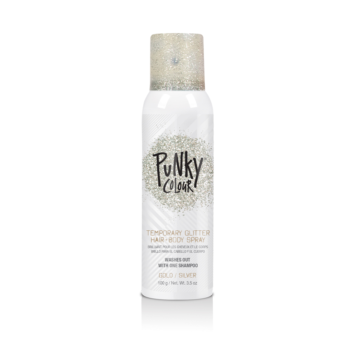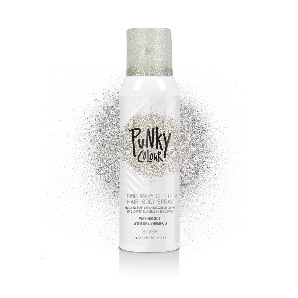 ¡Lleva el glamour al máximo nivel con el spray glitter para cabello y cuerpo Punky Colour!