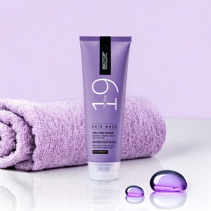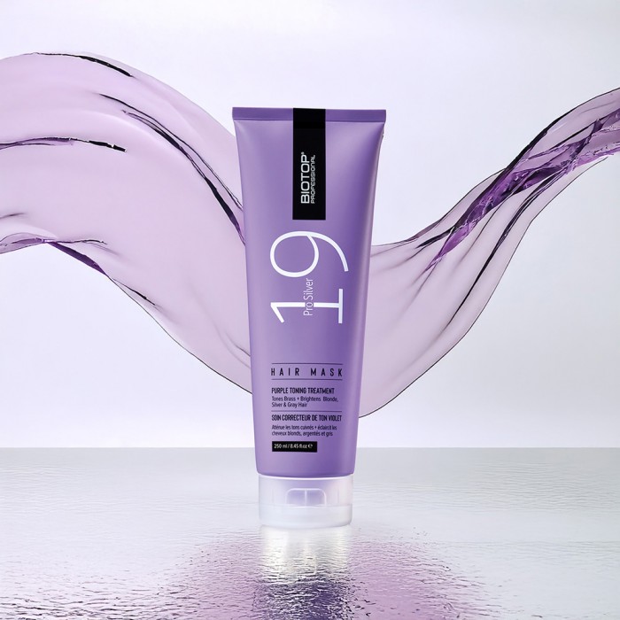 19 Pro Silver Máscara Capilar neutraliza los tonos amarillos y cobrizos no deseados en cabellos plateados, blancos, grises y rubios platino, a la vez que los hidrata en profundidad. Rica en ácidos grasos omega 3, esta máscara tonificante devuelve la suavidad, la manejabilidad y el brillo a los tonos rubios fríos.